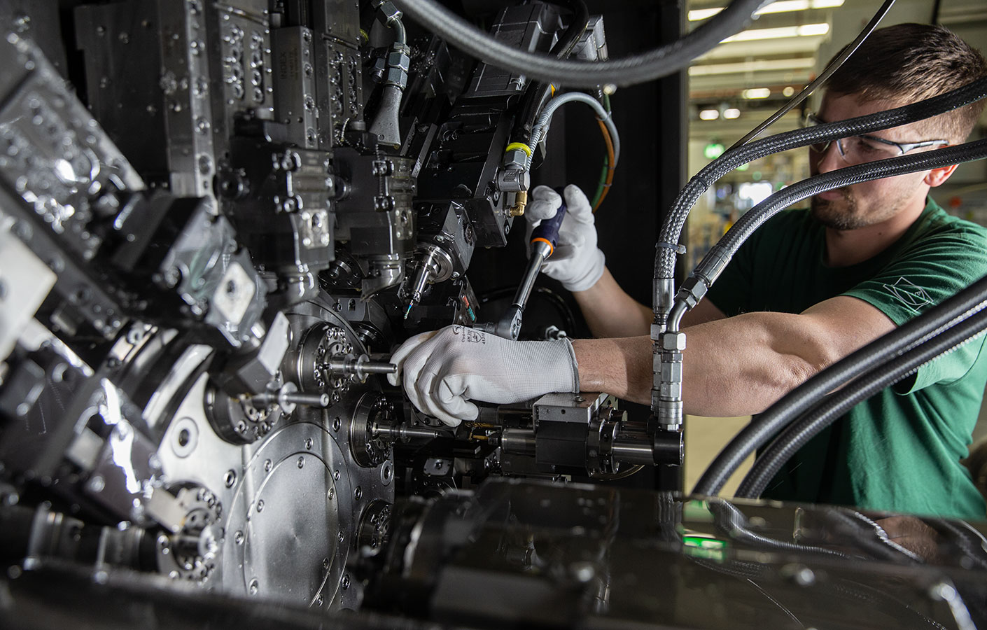 Work safety at HEIDENHAIN means protecting the health and well-being of our employees. The ability of our company to move forward depends on a healthy workforce. This is of particular importance while manufacturing of our products. Every year, at our headquarters in Traunreut, Germany, we set new goals such as improving the ergonomics of our workstations through measures like height-adjustable manufacturing stations or ergonomic chairs, eyepieces and macroscopes. Noise protection in our manufacturing areas is also a priority. And we regularly take measures to reduce physical strain during lifting and carrying tasks.